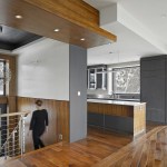 The renovated design engages with the powerful landscape, improves function and flow, and maximizes built-in storage. Screens, canopies, decks, and terraces were added to enhance the exterior design and create a series of new outdoor rooms. A wood slat screen wall weaves the building into the landscape, softens the existing building angles, provides visual privacy, and creates a safe barrier at a steep cliff. Interior walls and room layouts were adjusted so one interacts with multiple exterior views in every space. And by meeting the Passive House standard, the traditional heating system and lower furnace room were eliminated allowing a transformation of the stairwell and lower floor into an open, daylight filled space.