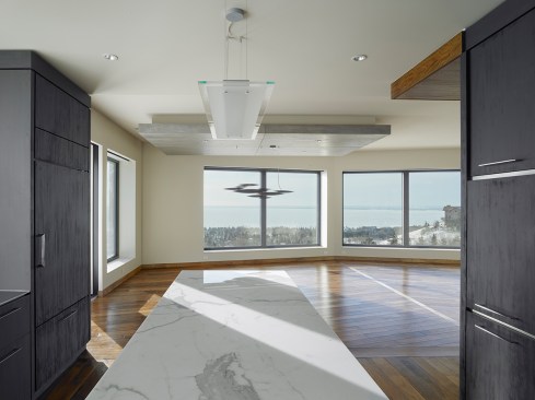 The project provides peace of mind for the Client knowing their home is built to last, requires near-zero maintenance, and allows for aging-in-place. The exterior materials of local limestone, stainless steel, zinc, and local thermally-treated wood are timeless in design and long-lasting. The window flashing system, the rainscreen cladding, and the vented roof all have multiple air spaces, drainage channels, and weather resistant layers utilizing flexible, compression sealants and smart breathable membranes to handle the wind-driven rain off Lake Superior and repeated freeze-thaw cycles. The diffuse-open wall and roof assemblies were evaluated for long-term moisture performance using hygrothermal modeling. Zero-threshold large doors and an accessible exterior walkway around the garage were added so the lower floor could function as a barrier-free living space. Finally, the energy savings will last the lifetime of the building as the reduction comes from passive components rather than high-tech systems.