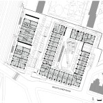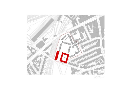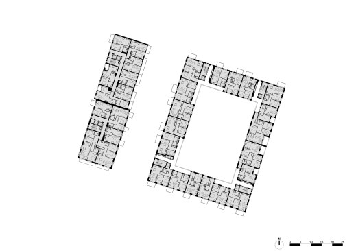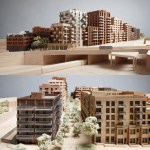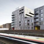 In the past, the development was defined by identical utilitarian apartment blocks enclosed by a surrounding wall. HawkinsBrown dispenses with the wall and sheathes each new building in its own distinctive architectural identity, with brick of varying hues and textures. Two attached linear structures—of six and seven stories, respectively—abut adjacent rail lines. A pedestrian avenue that will extend through subsequent phases separates them from a six-story structure with a central courtyard.