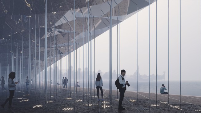 the works of Sinan are abstracted with the load-bearing units of the square, -the spread slim pillars-, lighting up the square and creating a memorial underneath, a cavernous space in connection with the Bosphorus and the peninsula, including the most important projects of Sinan installed specifically to their location.