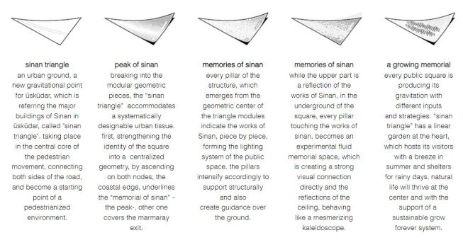 sinan triangle specifies a square that invigorates the pedestrian flow with a focal point and forms a new section in relation to uskudar coastline, creating a junction point that takes the heat off of pedestrians joggling between the water and heavy transportation.