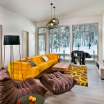 This contemporary mountain home has its great room on the third level. Looking through the window-walls across the roof decks to spectacular views, you’ll see why it’s called the Penthouse. The middle level of this three-story vacation home has ski-in access to Breckenridge Ski Area. There are two master suites, boys’ and girls’ bunk rooms and an additional guest room. All levels are accessed by a stunning stairway and an elevator. The vibrant colors and lighting give the home a warm feel despite it’s modern lines and frigid climate. The exterior features a combination of rock, wood, stucco and steel that let the custom architecture stand out while still appearing at home in the mountains.