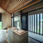 As part of the climate strategies, there are minimal window openings to the north east due to severe winter winds, while deep overhangs and slit-and-pillar patio screens are placed on the south and west faces to reduce direct solar exposure. The roofscape and exterior walls are 30cm thick and fully clad in rain screen granite panel system, giving the house extra insulation to withstand the summer heat and gale-force winds in the winter. Within the compound is a natural wellspring and a small organic farming patch for the family.