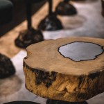 Adhering to PENICILLIN’s philosophy of closed-loop creation process and utilizing locally found resources, COLLECTIVE collaborated with @streetsignhk, a local conservation group that advocates street signs as urban cultural heritage, to design and fabricate customised neon wall lights, signages and handmade labels for the bespoke cocktail bottles. COLLECTIVE also worked with HK Timberbank, a local social entrepreneur focusing on recycling and reusing timber for construction and carpentry, to source pieces of fallen tree trunks from the typhoon seasons and fabricated the tabletops.