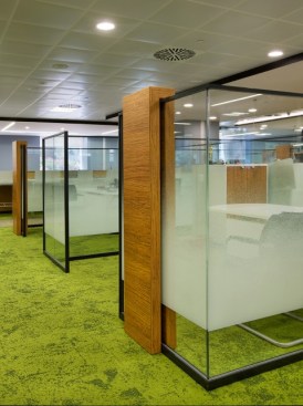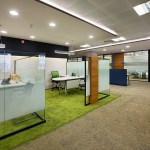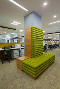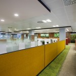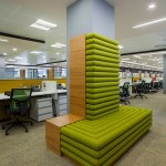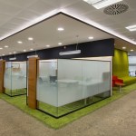 The task furniture is space-efficient with areas of desks assigned to teams and departments as well as individual staff. All furniture allows flexibility to be rearranged in the future. The directors enclosed offices on one floor are located around the core with a glass partition looking out to the circulation area and open-office space. The team leaders’ semi-private offices are located in the same manner on the second floor. This enabled the design team to open up the office space and have daylight and views for everyone.