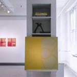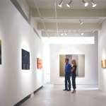 Due to its constraints, the design required an architectural detail with a noticeable impact on the space that also would work within and not dominate the whole design. The detail of floating a gypsum board wall above the ground, below the beam line and at a slight angle against the length of the space and column line created the new environment. An added wall at the end of the gallery of the same height, placed perpendicular and a few degrees off, creates an illusion of larger space and a more comfortable perspective. Because of a small gap between the two walls and large windows located behind the smaller wall, natural light and shadow play a dominant role without affecting the lighting of the artwork. The light also contributes a sense of anticipation to the space.