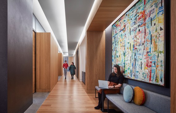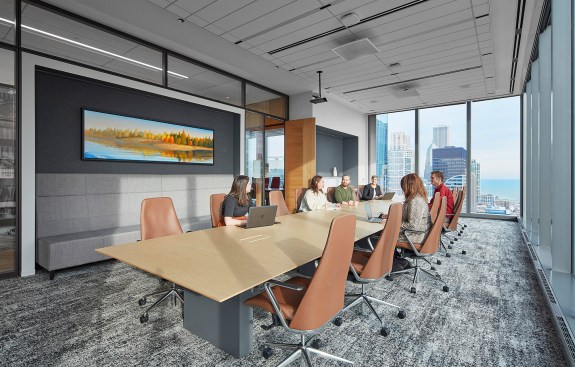Founded in 1912, Perkins Coie is a Seattle-based international law firm notable for serving many of the world’s most innovative companies and industry leaders. Recognized as an AmLaw 50 firm, it is the largest law firm headquartered in the Pacific Northwest and has 20 offices across the United States and Asia. Since establishing its Chicago office 20 years ago, the firm has experienced tremendous momentum and success in the Midwest, leading to its move in late 2021 to the Bank of America tower at 110 N Wacker. To accommodate its more than 250 Chicago-based attorneys and staff, Perkins Coie entrusted the legal design expertise of world-class architecture, design, and strategy firm NELSON Worldwide for its new office.