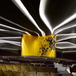 Inside, visitors can explore a 300-seat digital movie theater, a museum store, 14 stories of exhibition space that include a children’s museum, and a dedicated space for traveling exhibitions; there are also offices and auxiliary facilities for museum staff. Mayne and company have always been dedicated to a belief that design is a place to try out possible futures, and in this project—devoted to the exploring, inventive spirit of science—Morphosis’ material and tectonic daring seem to speak more clearly than ever before.