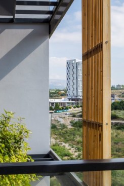 Due to its unique location and mixed-use setting, the building offers a sustainable lifecycle. The shops that are located on the ground floor creates public usage for both the civilians and the residents of the offices above. These shops work as an inverse duplex activating the gardens on the east side of the building. Buildings architectural approach is to intervene the outside and inside sensation. By the existence of vertical gardens the office residents are isolated. The wooden blinds that are located according to the light are creating an environment where you can comfortably work in a climate such as Mersin.