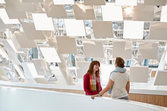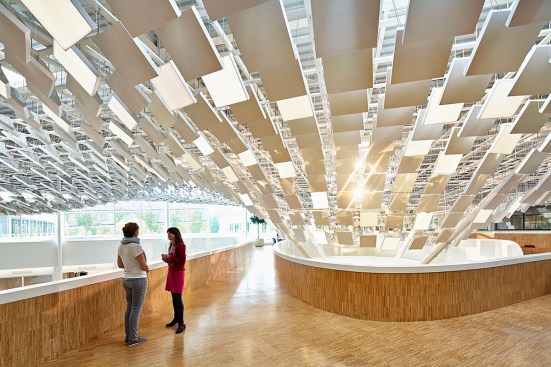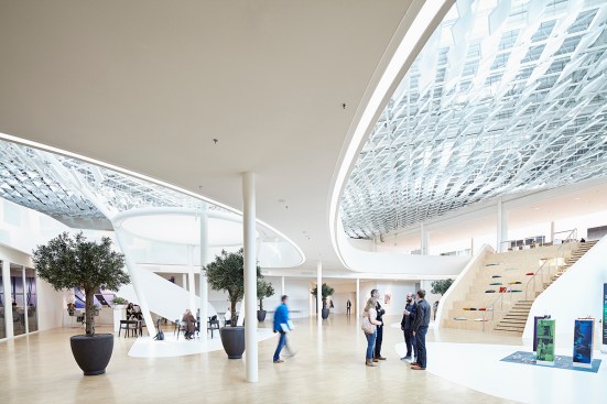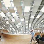 “The atrium, originally the central courtyard of the 1950s building, was designed as a place of welcome, way finding, branding and staff interaction, and therefore had to be strong spatially,” said LAVA director Alexander Rieck.