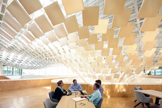 Five hundred panels use self-emitting Philips Ecophon Soundlight – an integral product that consists of comfortable LED lighting with sound absorption in an integrated light and acoustic ceiling system.