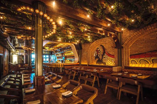 On the terrace, guests are exhilarated by two vigorous trees on either side and lush green planters strapped onto the walls creating a cosy stockade. The woody, countryside bar supplements the supply of potion, keeping the guests amused. Holistically, the architecture creates a mystic aura of the space that crusades to create a lasting impression.
