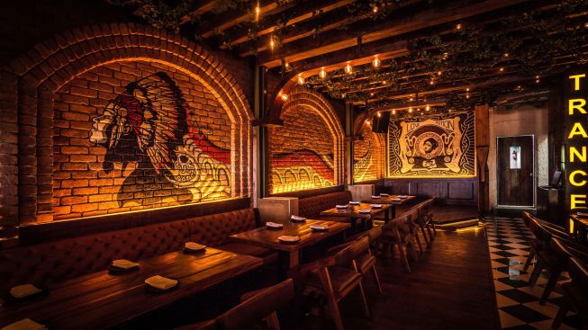 “Philtre” connotes a place of mystic love potion where people tend to develop fondness amongst themselves and a distinctive experience on offer. The eccentric exterior instantly draws attention, sketching the classical European balconies with falling planters and boozing folks. It creates a striking contrast with a post-modern illustration of fresh beer spilling down the facade from a barrel.