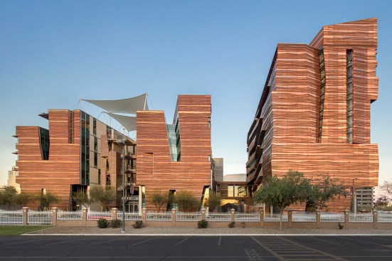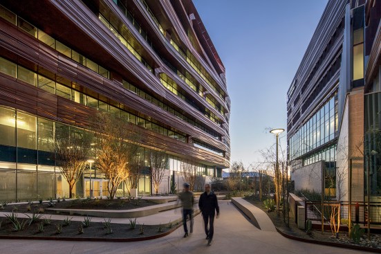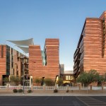 Construction is complete on the tallest addition to the Phoenix Biomedical Campus—the 10-story Biomedical Sciences Partnership Building (BSPB) designed by Los Angeles-based CO Architects with Ayers Saint Gross of Tempe, AZ. Programmed, designed, and constructed in only 27-months, the 245,000-square-foot, $99-million laboratory complex allows University of Arizona research scientists to collaborate with local healthcare providers and private companies to find new medical cures and treatments.
