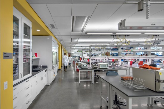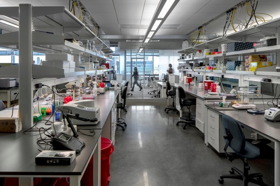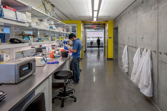 BSPB is organized to encourage collegiality, collaboration, and customization. “This building was programmed and planned before we knew who any of the occupants were, so we designed a general framework of labs, support spaces, and offices,” says Andrew Labov, FAIA, Principal at CO Architects. “The intent was to create an adaptable plan and utility distribution backbone that will be easy to modify when people eventually occupy the spaces and use them for different types of research.”