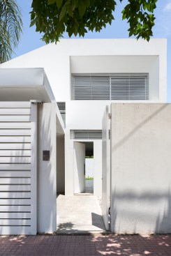 The Argentine courtyard residence was designed for an extremely private couple who nonetheless love indoor-outdoor living. The design accentuates the layering of private and semi-private spaces through its recessed volumes, spaces, and windows, and the strategic delamination of security gates from glass walls. This allows the veranda on the ground floor to serve as a flexible space that transforms from a private enclosed patio to a semi-open sun deck with a floating gate.