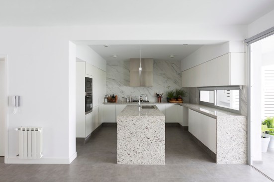 The house accommodates the everyday rhythms of Argentinian family life, featuring three-bedrooms; two baths; a large kitchen integrated with dining and living rooms into a loft-like space; a sun deck; and the requisite asador (a built-in outdoor grill station). The one-hundred-year-old lemon tree is left intact in the garden, framed by a swath of green grass.