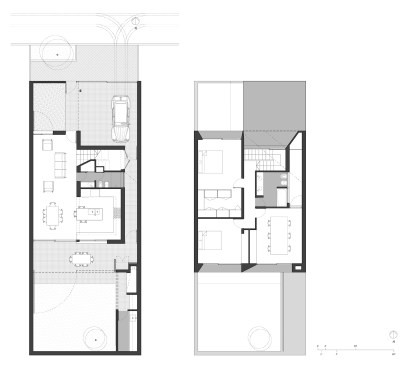 Piaggio House is a two-story, single family, small lot house in the outskirts of the city of Rosario. Adjacent to the Parana Riverfront, this middle-class residential neighborhood is characterized by a tightly subdivided urban grid with narrow plots. Like many buildings in Rosario, the house shares its party walls with its neighbors.
