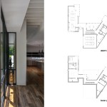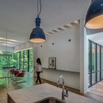 Public/Private: While the steel provides an exterior barrier, of sorts, between the family and the street, interior spaces are open and fluid, shifting perspectives throughout the house as the inhabitants move from the “public” volume of living, dining, and kitchen areas to the private volume of bedrooms and baths, all on one floor. Light-filled walkways join the two portions. The lower level is intended for guests and includes two bedroom suites on opposite sides of the floor for privacy.