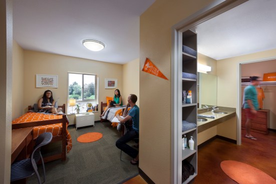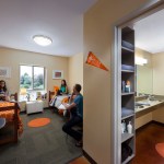 The project is the second of three phases of the College’s housing master plan – “the Residential Life Project” – its green blueprint for environmentally responsible development. When Phase I was constructed back in 2007, the residential complex made history by becoming the first higher education student housing project in the country to receive the USGBC’s LEED Gold designation. Now, on Phase Two, both client and design team set the sustainable bar a notch higher to achieve LEED NC Platinum certification, the USGBC’s highest designation. This newest addition to the student village was designed with more than 40 sustainable features and best design practices – ranging from green roofs and drought tolerant living walls to high capacity graywater system that recycles enough water to provide irrigation for all Phase II landscaping year-round.