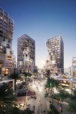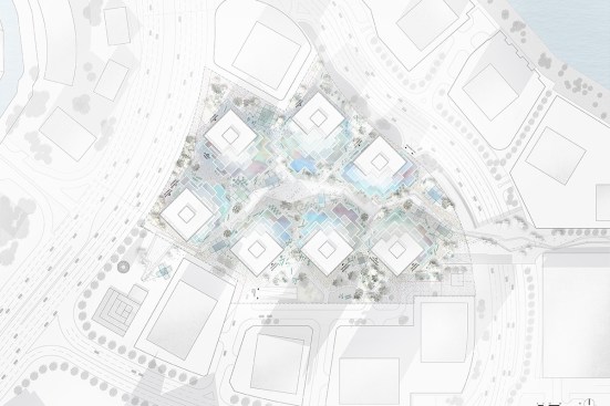 As such, Pixel represents a new way of approaching neighbourhoods, communities, the way of living, the way of working. Based on a research of possible residential models, we selected together with the client the "mini-tower" configuration, which resulted in spreading 7 mid-rise, relatively slim towers around the plot, influenced by the local conditions (sun and wind) and providing the most view around for most apartments. The 7 buildings embrace a fully pedestrianised, activated plaza, which is accessible from all directions around the plot (as it is the heart of the neighbourhood), while maintaining a volumetric direction to bring a larger flow of people from the adjacent beach, marina and public event place “The Artery” designed by Danish firm, Bjarke Ingels Group: BIG towards the city.
