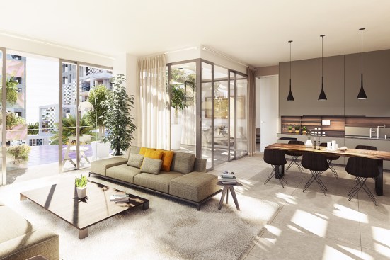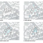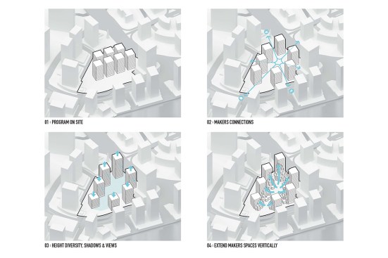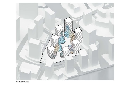 Pixel is beyond a traditional residential project with amenities and service that includes retail, co-working, makers, community spaces, from the smallest unit of 50 sqm available for rent for start-up businesses. The breakdown of the volume around the public plaza is engaging in this spirit. It forms individual, but flexible use units on the ground floor, first and second floor, and turns into shaded outdoor terraces interlocked with apartments on the upper floors. The typical “penthouse” approach is redefined as well: the Makers Village, honest to its spirit, offers studio apartments available for young generation on every level, and some of the more luxurious large apartments are located facing the lively central plaza on the third to fifth floors.