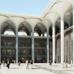 This contemporary evolution of the mosque form is also seen in a spate of recent design competitions for urban projects, including the winning design by Bjarke Ingels Group (BIG) for a mosque complex in the center of Tirana, Albania. Rendered as a massive, perforated structure, it will include an Islamic Center and a Museum of Religious Harmony and is meant to serve the Muslim community while also serving as a symbol for religious tolerance in a city with both Orthodox Christian and Catholic communities. The design reads more as urban starchitecture—BIG, in fact, beat out other starchitects such as Zaha Hadid, FAIA—than a religious compound.