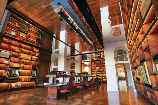 In the newly created courtyard entrance of the museum, Speaking Willow – the first permanent installation in D.C. by renowned contemporary artist Rafael Lozano-Hemmer – provides an immersive language experience for visitors upon arrival at Planet Word. The metal sculpture, resembling a weeping willow, plays voice recordings from hundreds of different languages as visitors pass underneath its branches. The interactive sound-and-light sculpture features 364 individual speakers and 3.6 miles of ethernet cable and was commissioned by Ann and Tom Friedman in partnership with New York’s Public Art Fund.