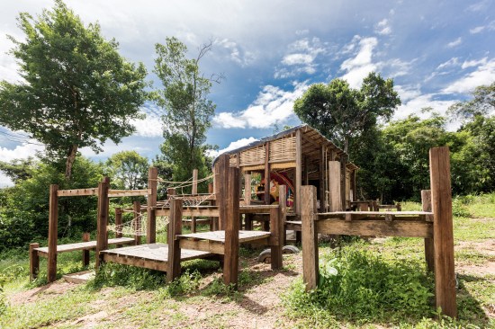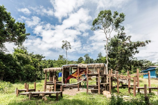 Playscape is a creative play and learning space that we designed and built for the local school on the beautiful island of Koh Rong off the coast of Cambodia. The design combines 3 elements: a playground, a semi enclosed space to read, relax and draw, and a shelter to protect a sculptural fish provided by Caribou through a winning competition entry. Our scheme unites all three parts into a simple and effective design.
