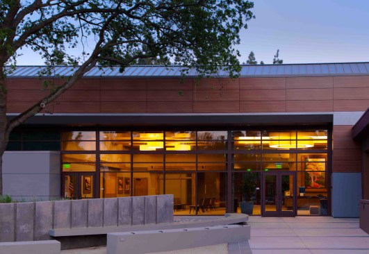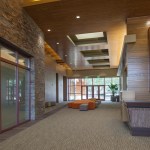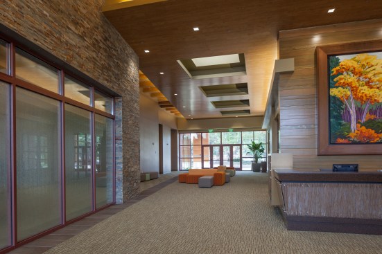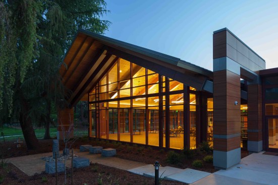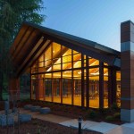 Designed to be the beacon in the park, visibility and transparency were the design themes of this community center. Taking cues from the agrarian heritage of the community, the building is a blend of traditional gables, crisp detailing and contemporary use of materials. Exposed structure is intentionally pushed outside the building envelope to maximize views and create unique transitional spaces between indoors and outdoors. The integration of natural materials – stone, warm woods and exposed steel – connects the building to the surrounding park.