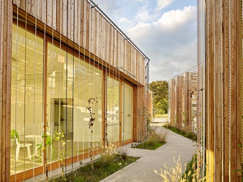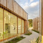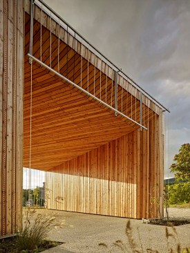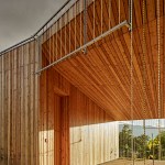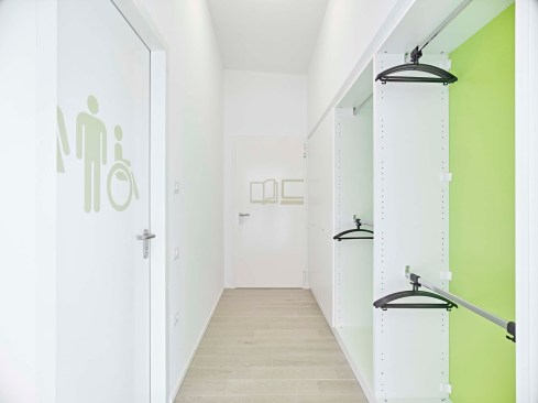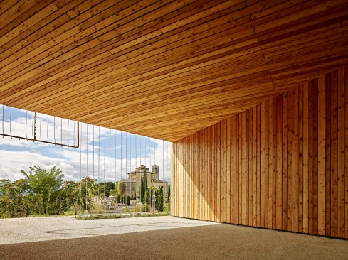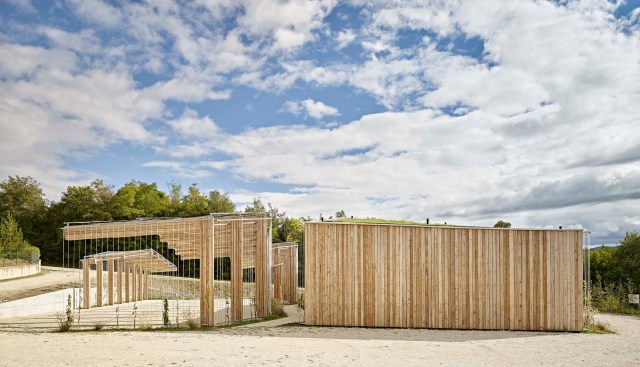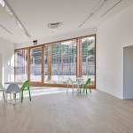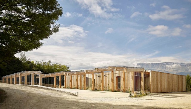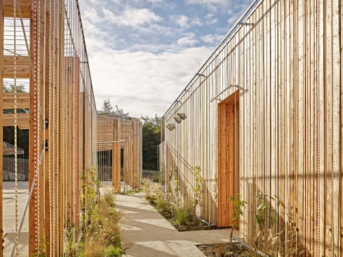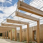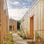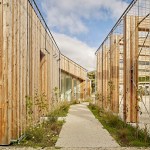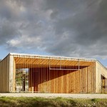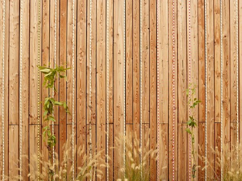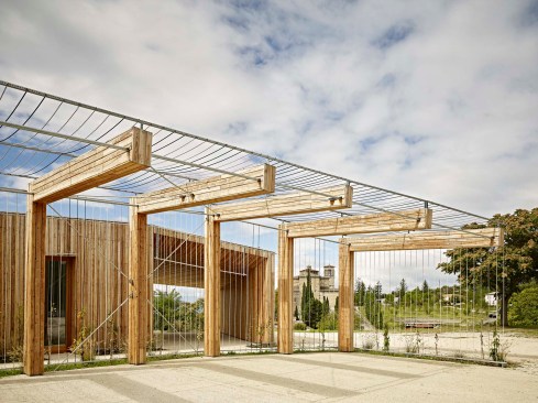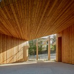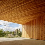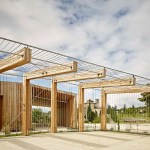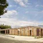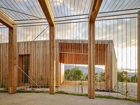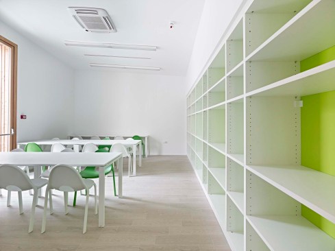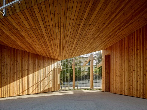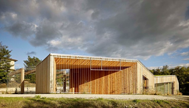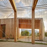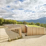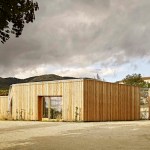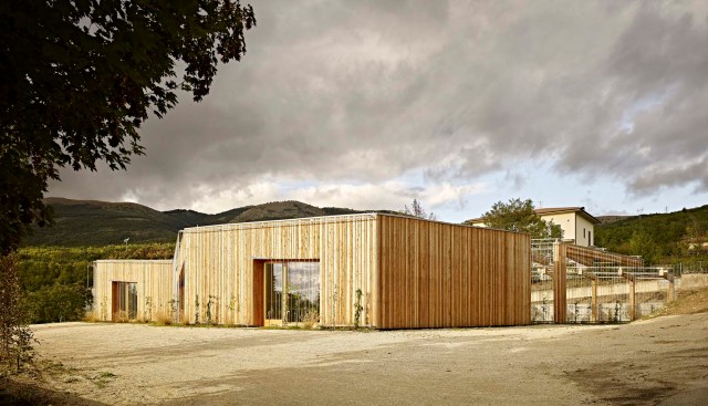 The Community centre is capable of hosting about 130 people from both the town of Poggio Picenze and from the neighbouring villages. The Centre is built on one level only and covers about 240 square meters (internal net surface): there are the entrance hall, two multi-purpose rooms, the library with Internet stations, one music room, and besides, services, a store room and both open and covered spaces. Externally, the walls are clad with natural larch wood, the same wood that has been used for doors and windows. The main closed volume is sided by two other open buildings for parking four-wheeled and two-wheeled vehicles, they're made of steel structures cladded with larch wood-boards, which are also covered with coloured wires that support vines.