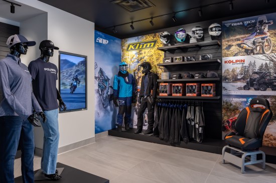 In the middle of the showroom experience is the reconceptualized Polaris retail store. Having the retail product and the vehicles experienced together in the same zone allowed the Polaris ride culture to come to life. Upon reviewing retail design strategies, the team moved forward with an organization of merchandise based on three major “zones”: On-road (including Indian Motorcycle and RZR), Off-road (including snow and ATV), and Aftermarket Brands (including riding gear and vehicle accessories).
