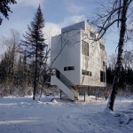 The Pole House is a year round cottage designed for a couple and their son on a heavily wooded site in the Manitoba Interlake, two and a half hours North of Winnipeg. The cottage lot, obtained through the provincial cottage lot lottery system, has Lake Winnipeg frontage, although a provincial easement limits the cottage’s proximity to the water.