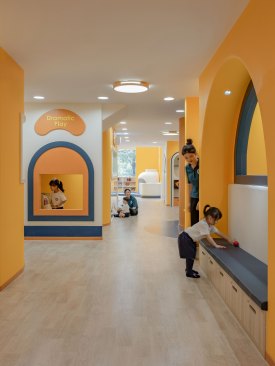 When pondering about the status of early childhood education institutions in urban development, people realize that the rapid expansion of the industry demands growth spaces that truly belong to the children. In this regard, Pony does not advocate the “design” of the space, but the beautiful picture of the children and the space in natural harmony. Just like standing outside a shop window, the interior showcases a breathtaking world of pure innocence.