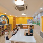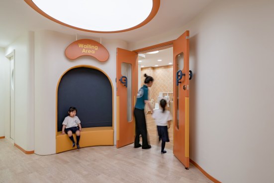 To design classrooms with small class structures proves to be a clear and concise approach based on the education concept of the brand. As such, the designer parts away with any cumbersome furnishings and complex color matching techniques, creating a positive learning environment for children to study, a place less susceptible to outside interference. Even more, children psychology is considered to design every corner on the right scale, allowing children to feel safe and relaxed, encouraging them to take part in group activities at ease.