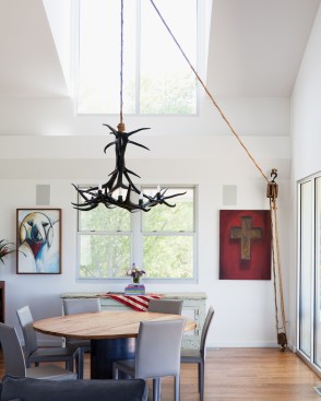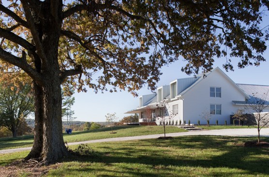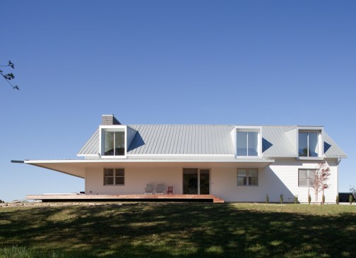 The Porch House presented Hufft Projects with a unique challenge. The clients desired a residence that referenced the traditional forms of farmhouses but also spoke to something distinctly modern. A hybrid building emerged and the Porch House greets visitors with its namesake – an east and south facing ten foot cantilevering canopy that provides dramatic cover. The residence also commands a view of the expansive river valley to the south. L-shaped in plan, the house’s master suite is located in the western leg and is