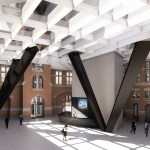 Collaborating with services consultant Ingenium, ZHA developed a sustainable and energy-efficient design reaching a ‘Very Good’ BREEAM environmental rating. Despite the challenges of integrating with a protected historic building, high standards in sustainable design were achieved by implementing effective strategies at each stage of construction. A borehole energy system pumps water to a depth of 80m below grade in over 100 locations around the building to provide heating and cooling. In the existing building, this system uses chilled beams. In the new extension, it uses chilled ceilings. Waterless lavatory fittings and motion detectors minimise water consumption while building automation and optimal daylight controls minimise artificial lighting.