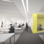 The client requirements for an ‘activity based office’ are integrated within the design, with related areas such as the restaurant, meeting rooms and auditorium located at the centre of the upper levels of the existing building and the bottom floors of the new extension. The remaining floors more remote from the centre, comprise open plan offices.