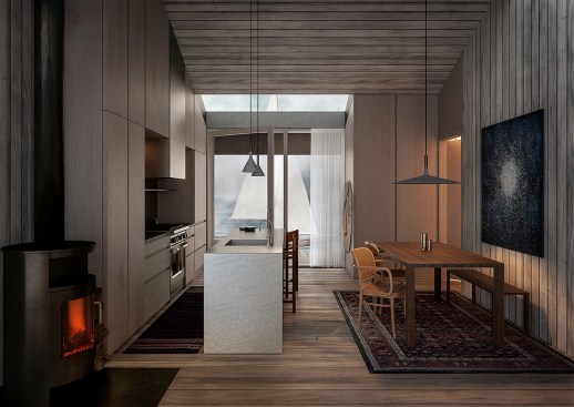 A float home renovation situated along the north end of Lake Union in Seattle. The envelope of the existing home was retained to honor the restrictions of shoreline development. Conceptually, the interior palette is intended to harness and amplify the natural light. The exterior is given a material contrast of muted, dark tones to provide rest to the eyes when approaching by foot or boat.