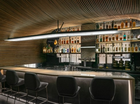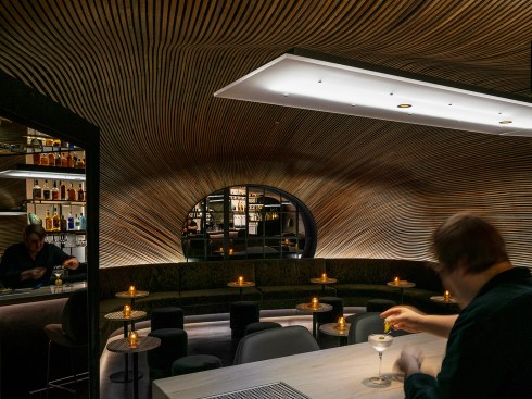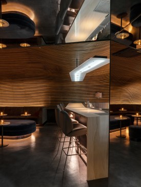 The Portal creates a transformational and inspiring experience for patrons of a craft cocktail bar embedded inside of an existing restaurant in Downtown Tucson, Arizona. The concept establishes distinct contrasts of straight line angularity to curving anthropomorphic geometries to define a unique experience for guests. In between the linear and curving spaces is a low height, mirrored kaleidoscope entry that transitions visitors into the scale-less wooden womb that is comfortable and inviting with good acoustics for sharing secrets. Through its distinct zones of experience, refined complex geometries and detailing of honest materials, the project strives to create a seamless stage to celebrate life and love.