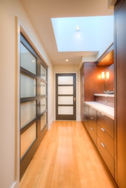 Additional skylights were added to the family room, kitchen, hallway and master dressing area to bring in more natural light. This also extends the visual height to the already low ceilings.