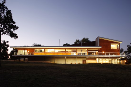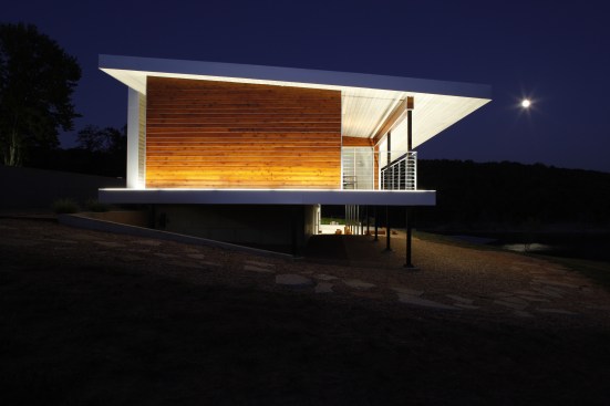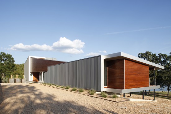 The house was commissioned by two brothers as a weekend retreat located on Table Rock Lake in southwest Missouri. It is situated on a peninsula with lake views on three sides. The house sits on columns and utilizes previous paving. Natural light and ventilation flow strategically through the home enhancing it’s picturesque views and relation to the natural setting. Design decisions regarding form and material choices respect and develop these ideals. Taking inspiration from a vintage Polaroid Camera, the form of the building is intended to frame the scenic setting from