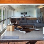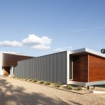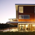 The Postcard House is a conventional wood frame construction. Exterior materials consist of pre-finished metal panels, and stained
