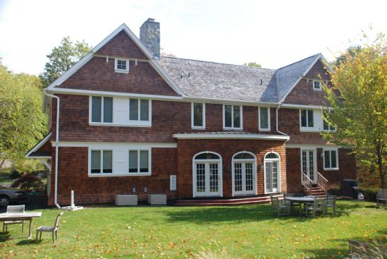 All of the roofing, siding, and exterior trim was removed and replaced with cedar shingles for the roofing & siding, with PVC chosen for the exterior trim. All of the existing windows remained in place, with grilles being added to complete the shingle style look.