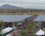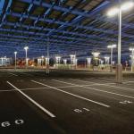 Part civic shade structure, part energy generator, and part billboard, Power Parasol Lot 59 is a galvanized steel structure topped by 7,600 photovoltaic panels that covers an existing parking lot for 800 vehicles at Arizona State University’s Tempe, Ariz., campus. Designed by Phoenix-based Debartolo Architects, who worked in concert with a team of structural and electrical engineers, the 227,700-square-foot canopy generates over 2.2 megawatts of electricity. It is supported by slender columns that provide the supporting armature for hanging banners, advertisements, and lighting.