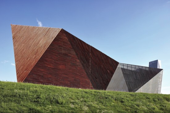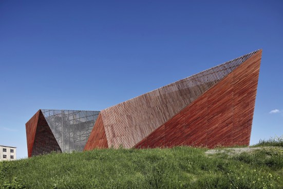 A virtuous example of coexistence between the industrial and the agricultural world, Powerbarn by Giovanni Vaccarini Architetti in Russi (Ravenna, Italy)interprets the conversion process of part of an industrial area, once property of the Eridania sugar company, into a bioenergy production plant. Surrounded by dunes and natural pathways, the new pole for the production of electricity from renewable sources is fully encircled by the territory it derives its energy resources from. The architecture of the large furnace building, which dominates the area, offers mutable and faceted displays of itself. Its imposing mass is disguised by means of a wooden skin inspired by the Razzle Dazzle mimetic strategy of military origin. A short film by The Piranesi Experience and photos by Massimo Crivellari reveal its qualities.