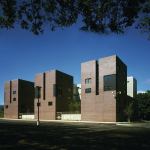 The dorm was to be situated in one corner of the school’s urban campus, near some well-preserved townhouses and low-rise apartment buildings. The PKSB scheme divided the program’s 128 two-student rooms among several volumes that reflected the neighborhood’s scale—a long bar on the campus side and three almost cubic wings facing the community. Interior amenities that helped the architects to win the commission—and the P/A citation—were the exceptional shared spaces they were able to add to the program, within the budget: several double-height project studios and a large, equally high entrance lobby that was intended to double as a gallery or a theater.