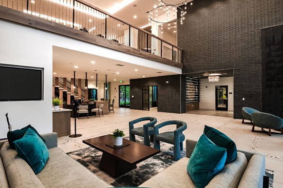 Residents are able to enjoy a 10,000-square foot amenity center containing a club room with a coffee bar, interactive game room, ultramodern fitness center featuring both traditional and virtual equipment. The amenity center offers an easily-accessible package delivery room, outdoor movie wall, outdoor pavilion and a wifi business center with private micro-office suites set with printers and quiet spaces that are designed to inspire creativity, concentration and workday efficiency. Residents also have exclusive access to a rooftop terrace and lounge overlooking a stunning resort-style, zero-edge pool with surrounding plush poolside cabanas.