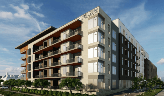Designed by Dallas-based O’Brien Architects and Atlanta-based Dwell Design Studio, Presidium Waterford will offer an open building design that creates an inviting, airy aesthetic with plenty of natural sunlight. Each unit will include smart thermostats, smart lighting and smart touchless unit and amenity entries that can be accessed through a single smartphone app.