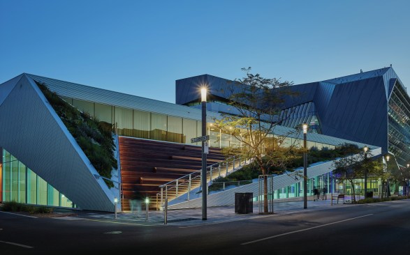 Designed to integrate with the neighboring university facilities, Pridham Hall contributes to a lively atmosphere with the ability to facilitate recreation and connectivity between the university, business and student communities. The hub extends campus life and culture beyond daytime, creating a place that influences the changing nature of the campus and the west end of Adelaide.